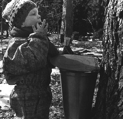 Keith Murray, age 4, samples sap during a tour at the Morgan Arboreteum Sunday afternoon during the March Spring Fest Fun Day.