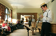 McGill student Cameron Wallace toodles on the clarinet for the Women Associates of McGill's Dixieland and Blues music and munchies event. WAM held their latest banishing blahs bash at the Royal Victoria College for Mardi Gras on February 8. Canapés and coffee were served at this New Orleans-themed event.