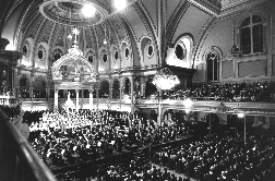 The Faculty of Music took on the challenge and has been earning raves for two recent performances of the Britten masterwork. Last Wednesday, more than 400 music students played and sang to an appreciative audience at the National Arts Centre in Ottawa. A standing-room only crowd heard the students'War Requiem on Friday night at St. Jean Baptiste Church here in Montreal (above).